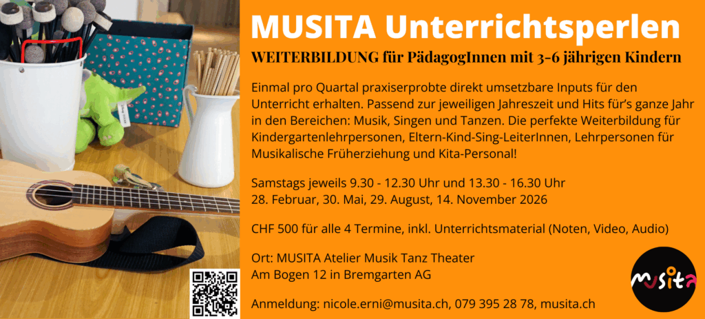 NEWS NEWS NEWS!!! Alle MUSITA-Kinderkurse werden ab August 2025 von der Musikschule Bremgarten angeboten🥳! Somit sind die Kurse für die Einwohner von Bremgarten, Hermetschwil-Staffeln und Eggenwil subventioniert. Selbstverständlich sind nach wie vor auch alle anderen herzlichst Willkommen! In den meisten Kursen gibt es noch freie Plätze! Schnupperlektionen: nicole.erni@musita.ch, 079 395 28 78