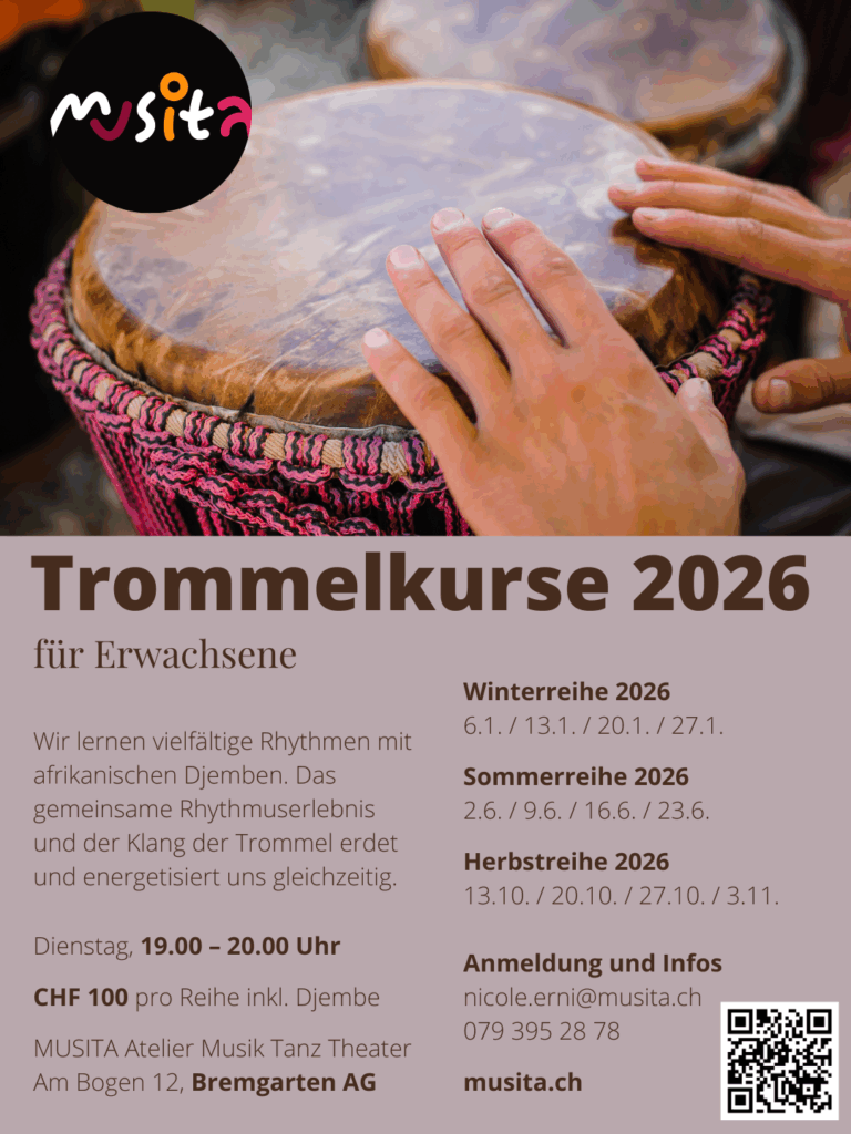 Erwachsenenkurse für das Jahr 2026 sind ab sofort buchbar! Es gibt wiederum die Weiterbildung für PädagogInnen: MUSITA Unterrichtsperlen sowie 3 Trommelkurse. Ich freue mich auf deine Anmeldung!